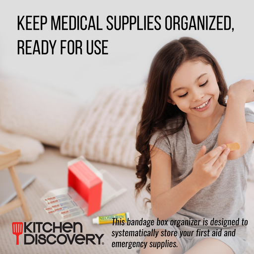 View full detailsBandage Box – First Aid Box Stores Bandages by Size – Compact Medical Organizer for Ointment, Gauze Bandages, Medication, Tweezers, and Thermometer - #52033 AM