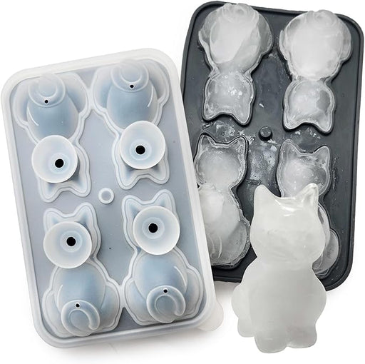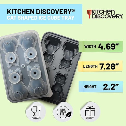 3D Cat Ice Cube Trays - Kitchen Discovery - Fun Cat Silicone Mold with Easy Fill Funnels – Each Makes 4 Jumbo Kitty Ice Cubes, Each About 2 x 3 Inches, Highly Detailed to Charm Cat Lovers - Set of 2 #24936