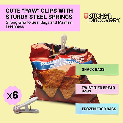 View full detailsCat Paw Chip Bag Clips – Kitchen Discovery Cute Chip Clips are Strong and Grippy for Securing Snack Bags, Hanging Laundry, and Organizing Paired Socks – Fun Set of 6 #36436