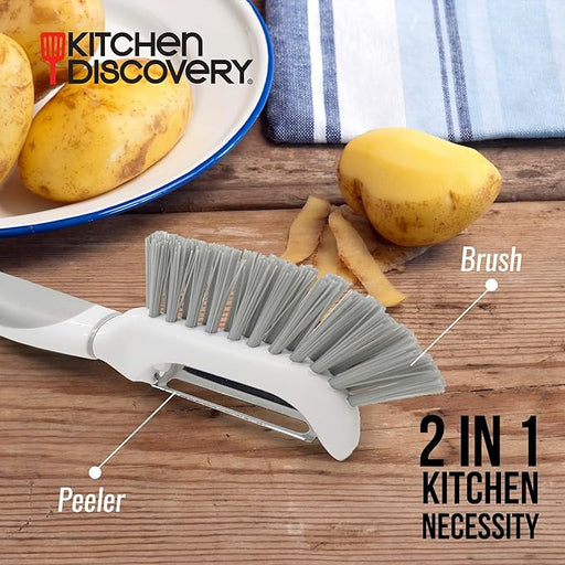 View full detailsVegetable Peeler with Brush – Kitchen Discovery – Ergonomic Veggie Peeler with Scrubber Brush for Easy Peeling and Cleaning – Built-in Brush Lifts Soil and Dirt and Helps Remove Waxy Coatings Visit the Kitchen Discovery Store #24827