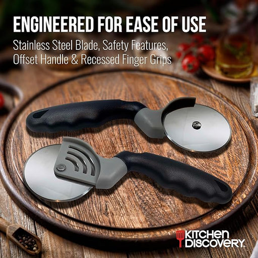 View full detailsStainless Steel Pizza Cutter – Kitchen Discovery – Pizza Wheel Cutter Slices Cleanly Through Gooey Cheese, Thick Toppings and Crispy Crust – Built In Safety Features Protect Hands #24879